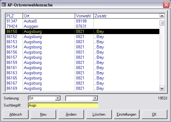 AP-Ortsvorwahlensuche ist ein Datenbank-Modul, in der die deutschen