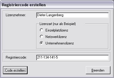 Lizenzschlüssel zu einer Vollversion freischalten. Der AP-Registrier-Manager