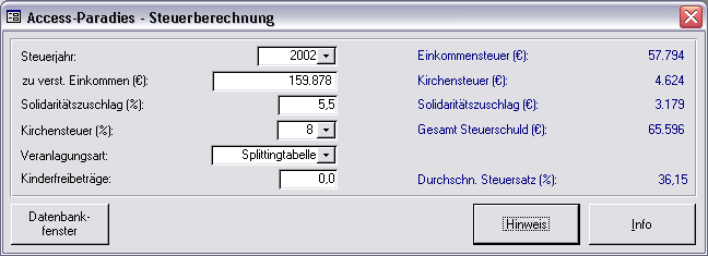 Mit dem Access-Modul AP-Steuerberechnung erhalten Sie einige Funktionen,