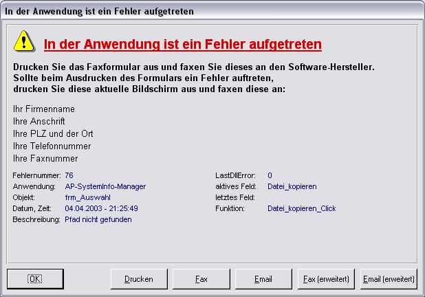 der Fehler aufgetreten ist, reichen diese Informationen meist nicht